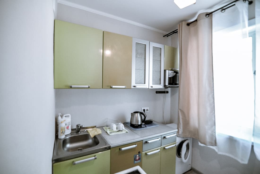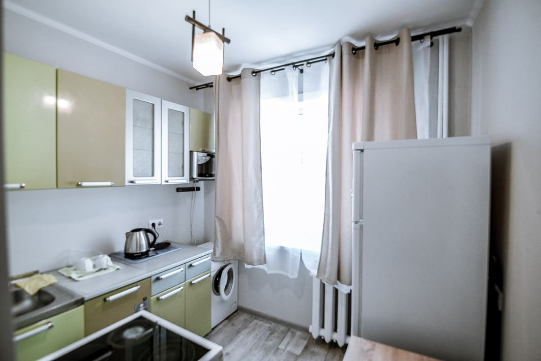 · Холодильник, микроволновая печь, чайник, посуда