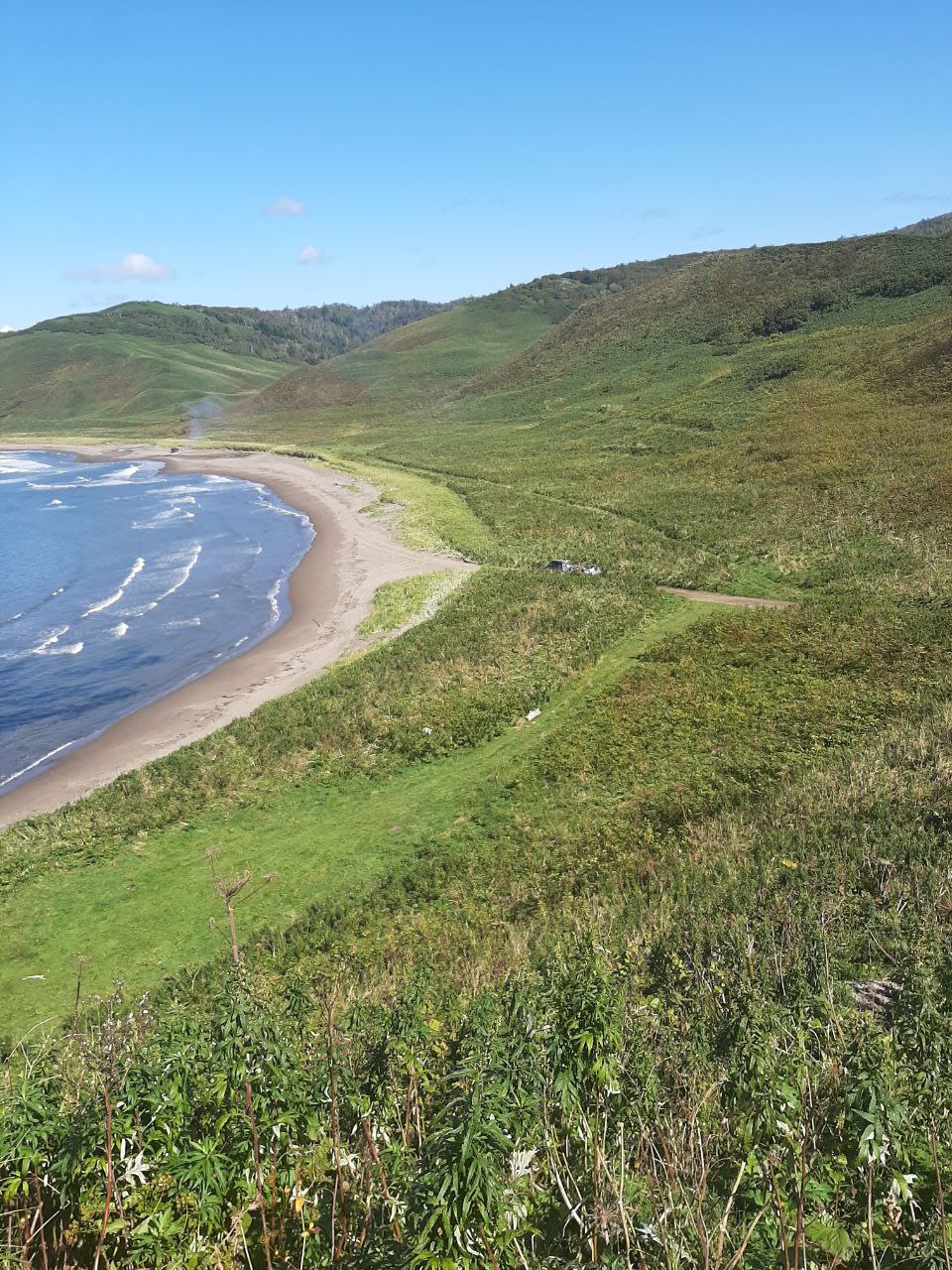 Пикник на берегу: Обед с видом на бушующее Охотское море. Свежий воздух и шум прибоя прилагаются.